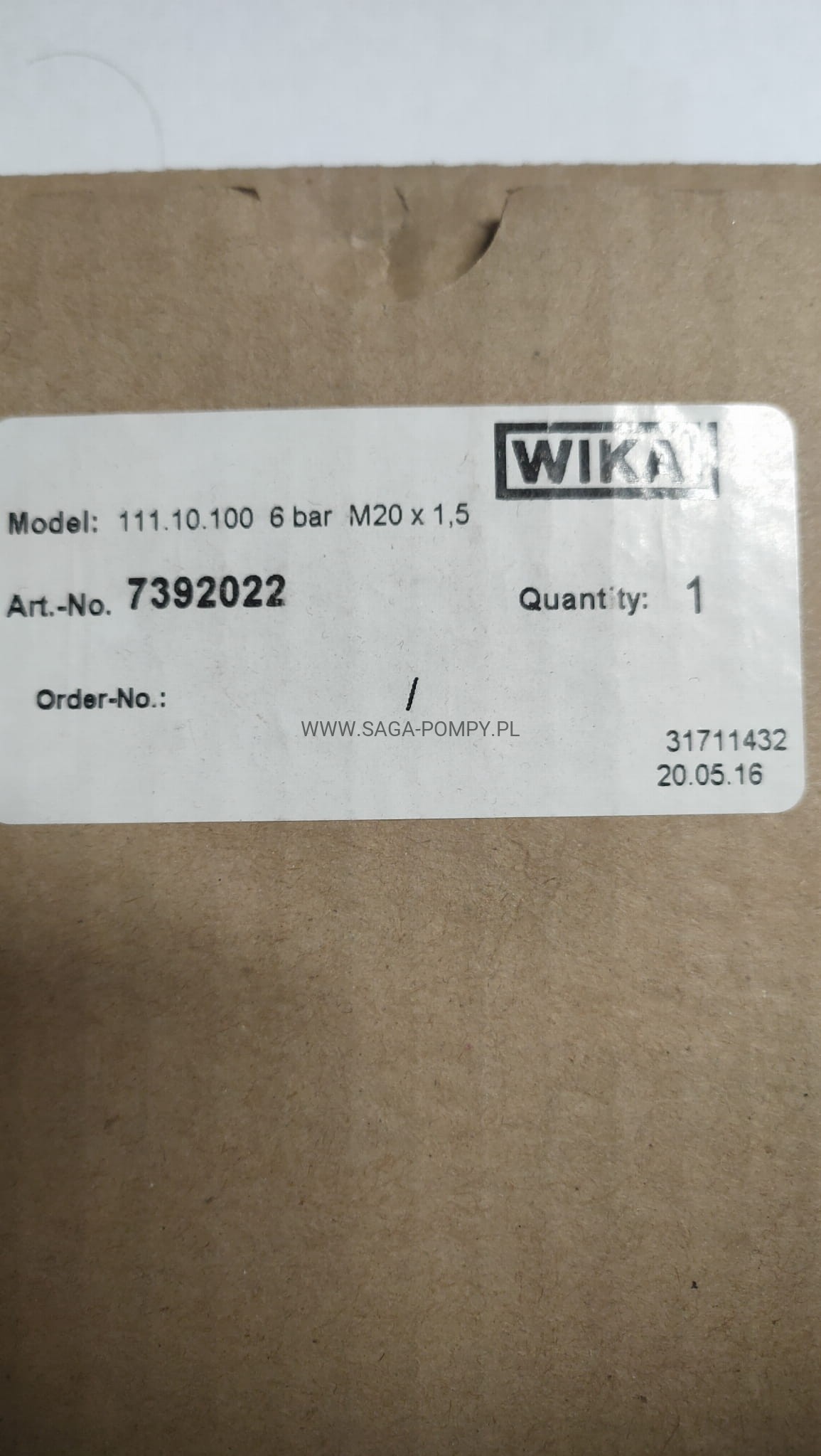 Manometr WIKA 111.10.100 6 bar M20×1,5 dolne przyłącze