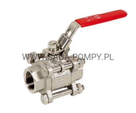 Zawór kulowy, stal kwasoodporna, trzyczęściowy, NPT, Sferaco typ 744,